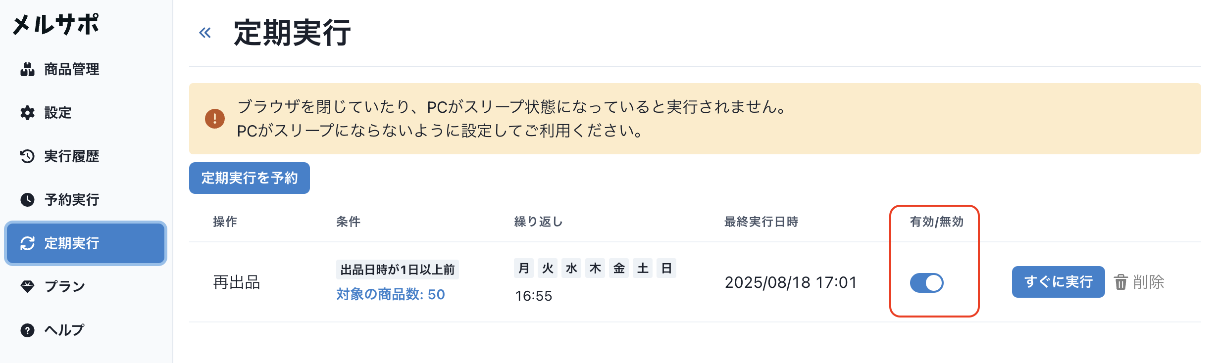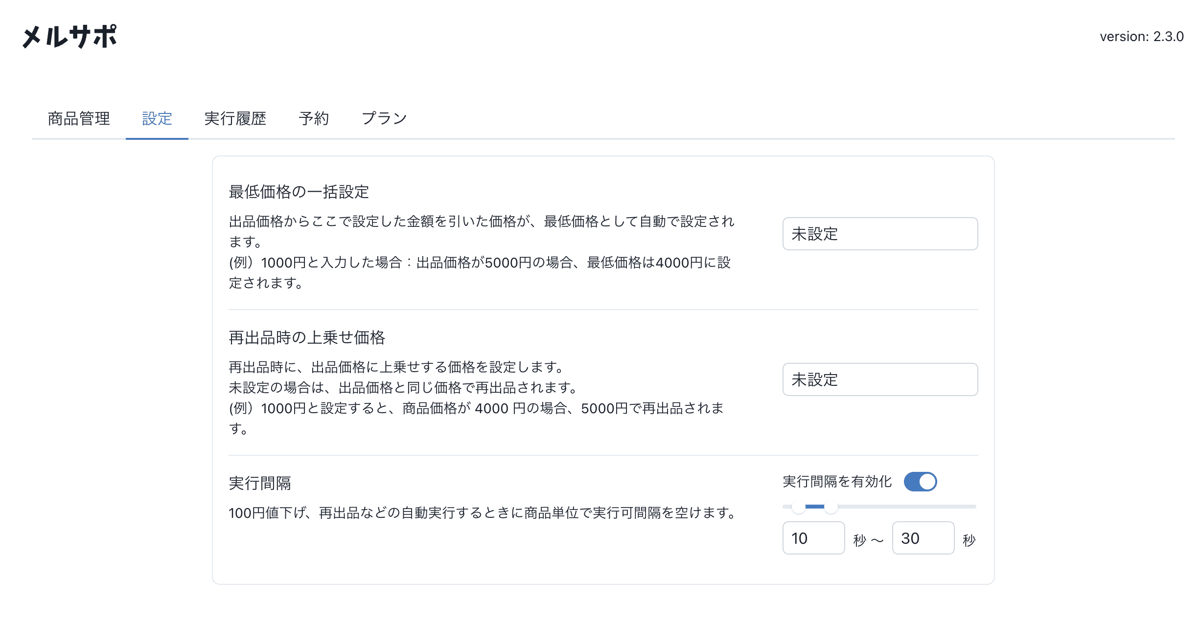 100円値下げ、再出品などの自動実行するときに商品単位で実行可間隔を空けられるようになりました。