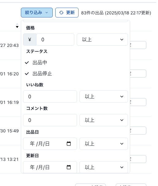 出品日時、更新日時で並び替えできるようになりました