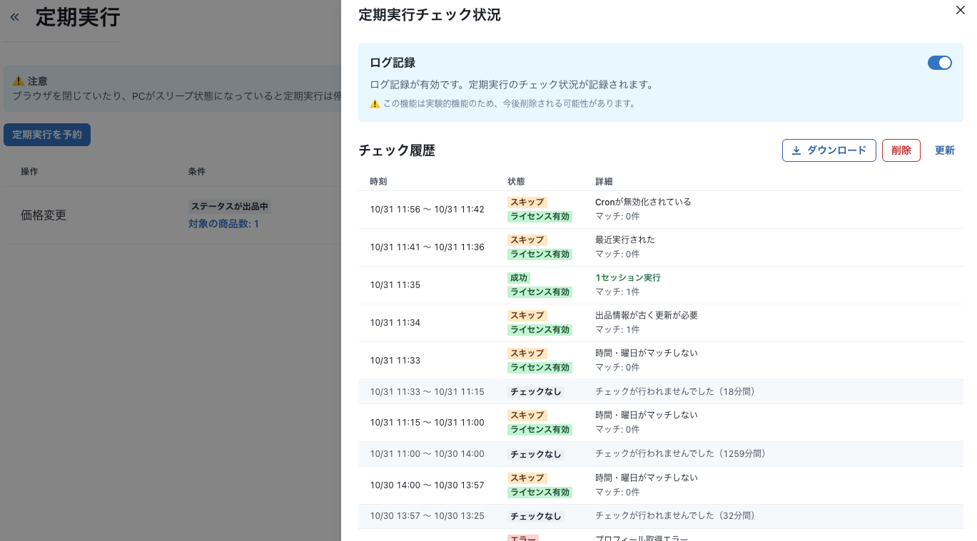 定期実行のチェック状況を詳細に確認できるようになりました