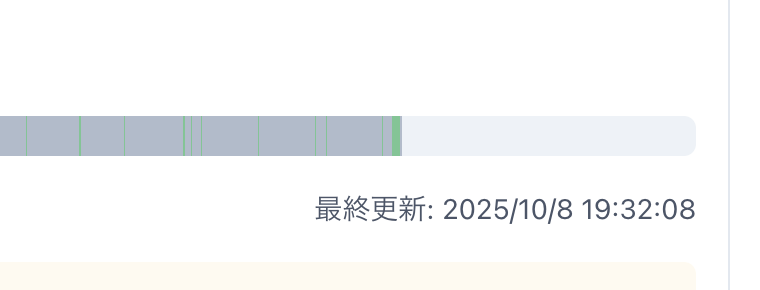 現在もチェックが動作中か | チェック状況のバーの右下の「最終更新」の日時が現在時刻の1分前になっているか ![]() | 現在時刻の1分前になっていない場合はチェックが動作していない可能性があるため、Discordからお問い合わせください |