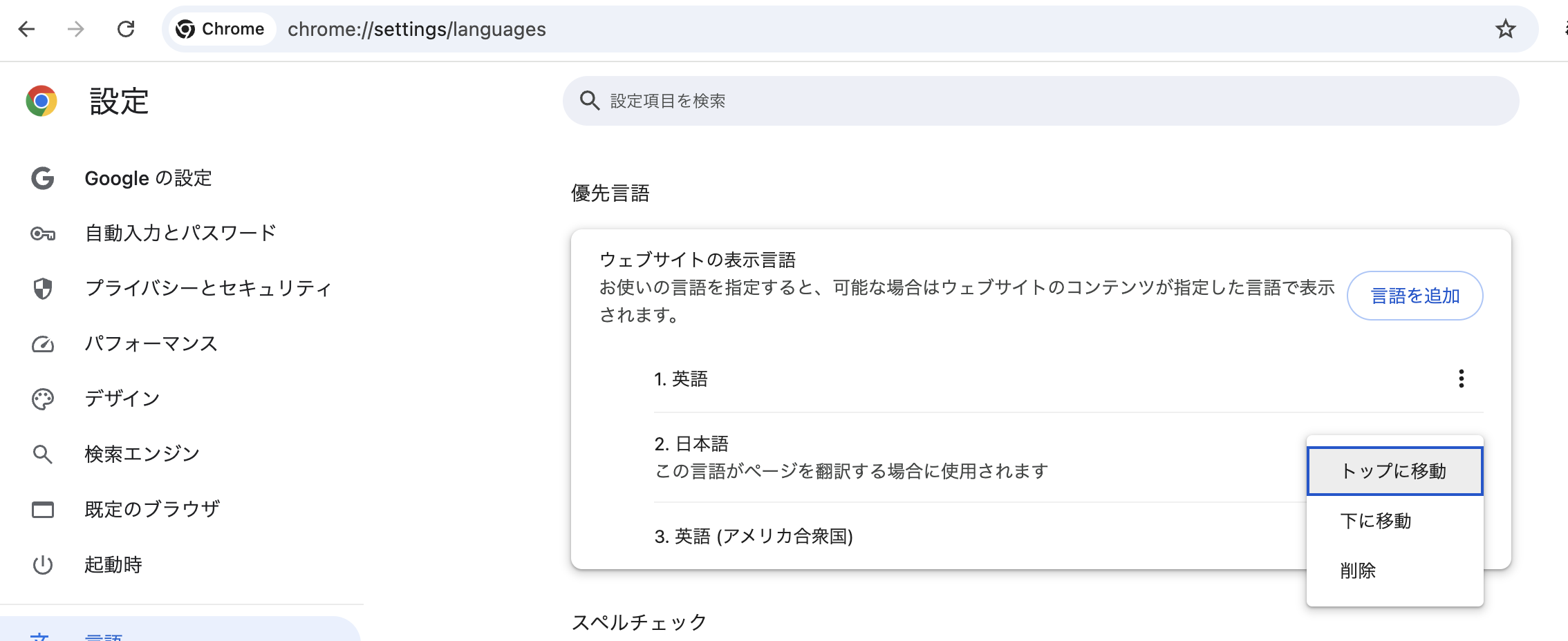 優先言語を日本語へ変更する方法