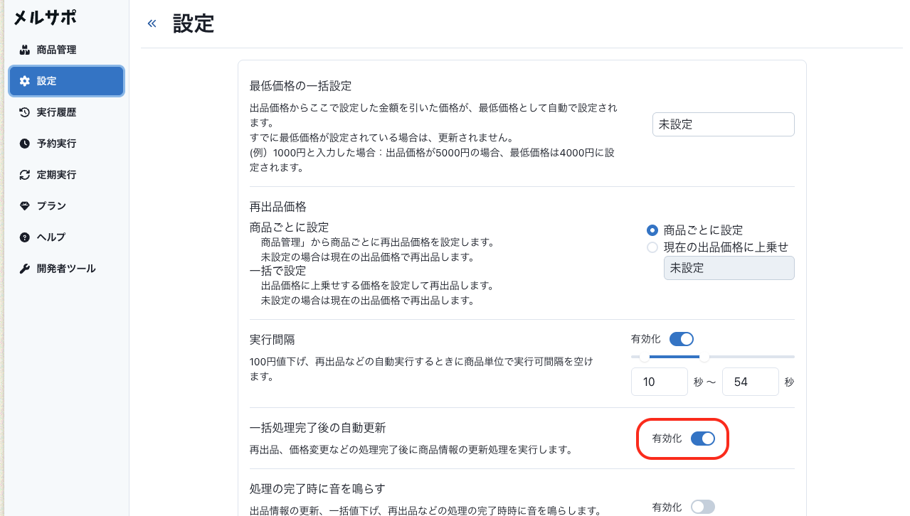 再出品や価格変更といった一括処理の実行後に商品情報の更新を自動で実行できるようになりました。
