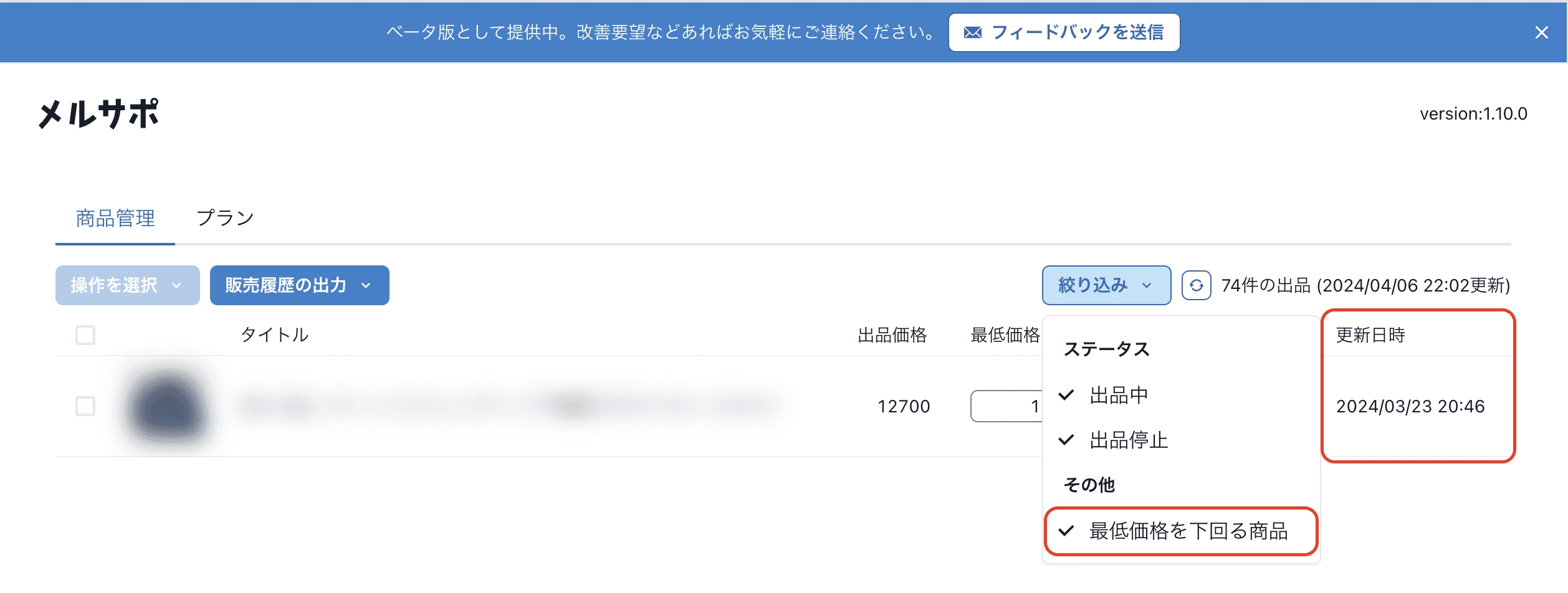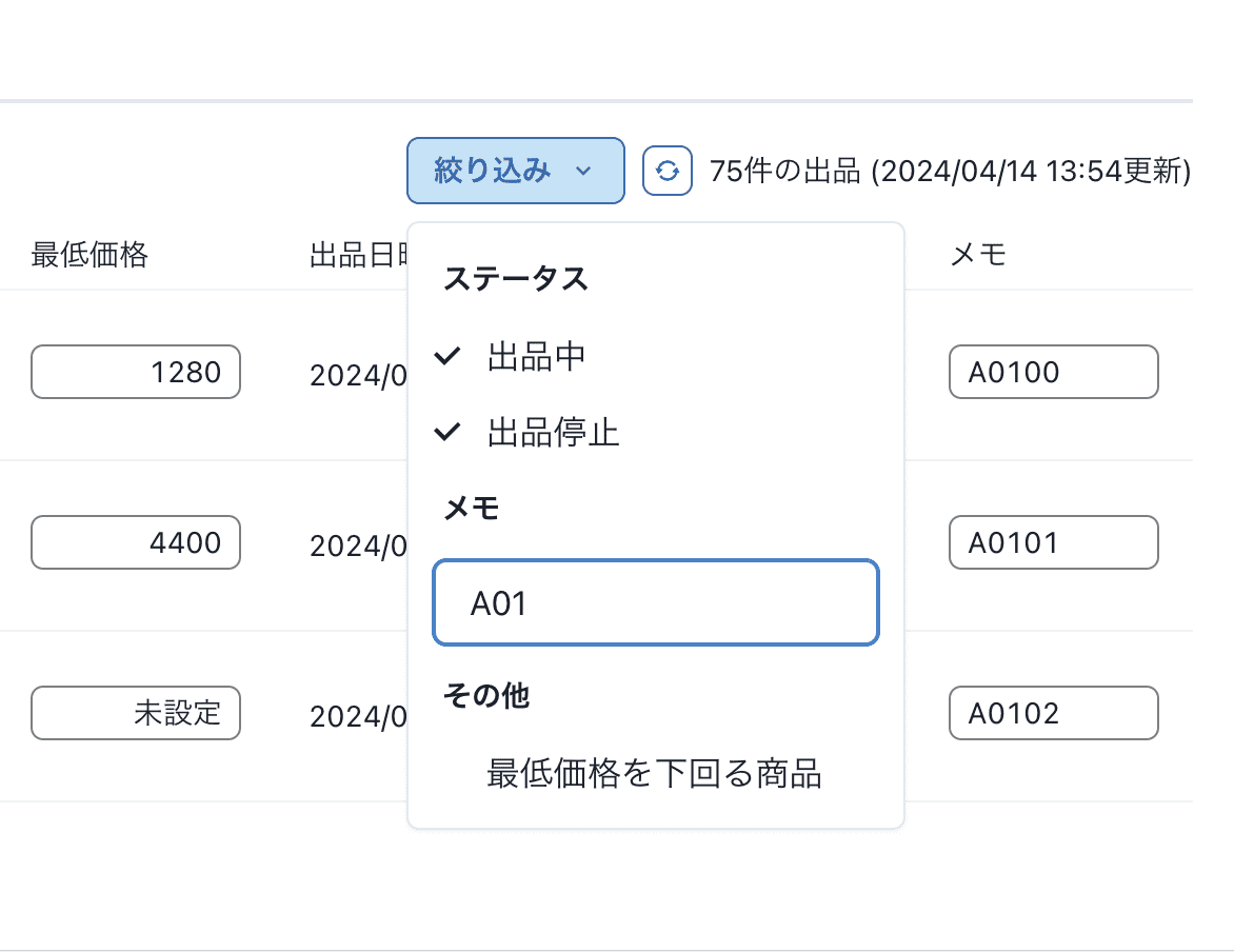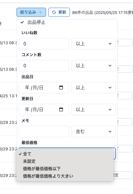 最低価格を下回る商品を絞り込めるようになりました