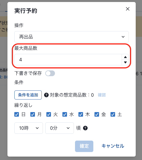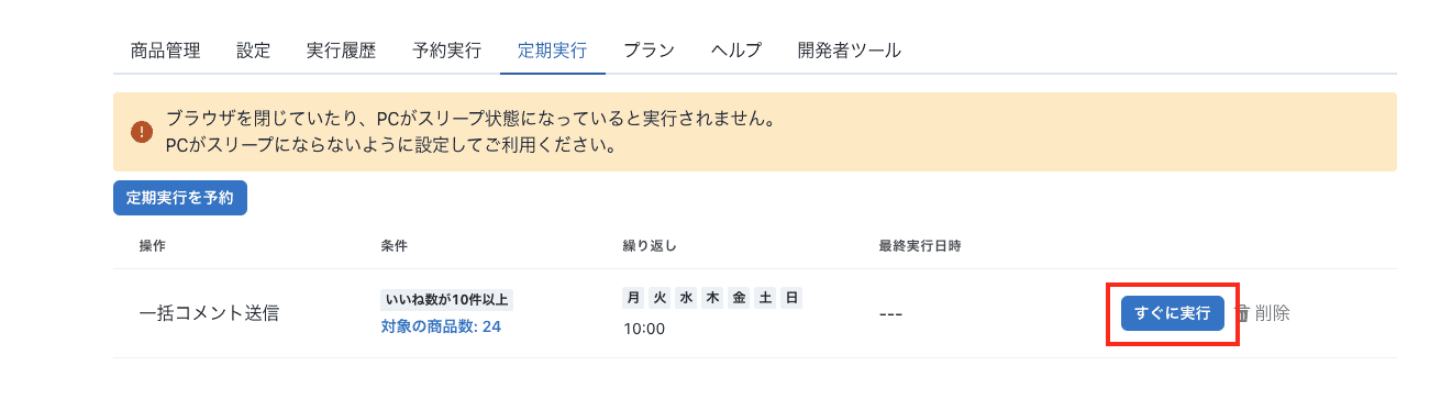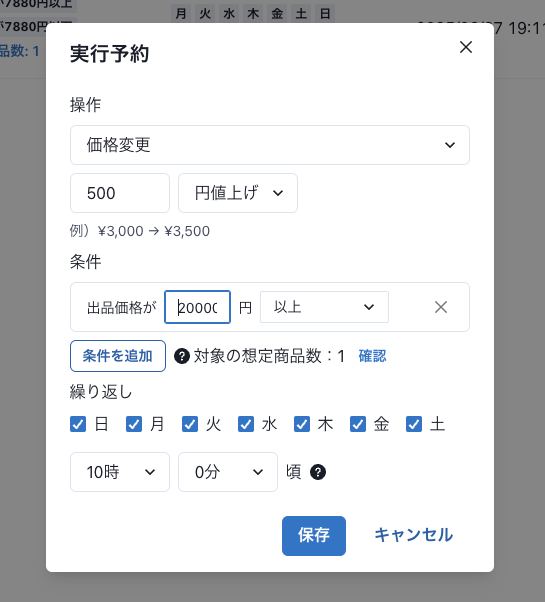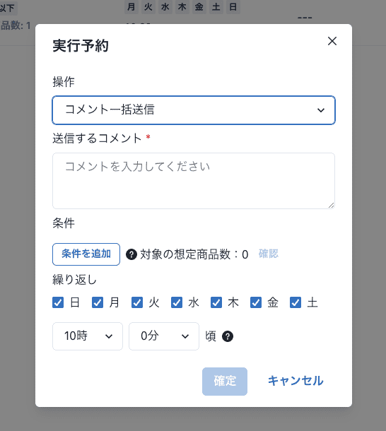 一括値下げ、再出品、一括コメント送信を時間指定して予約実行できるようにしました。