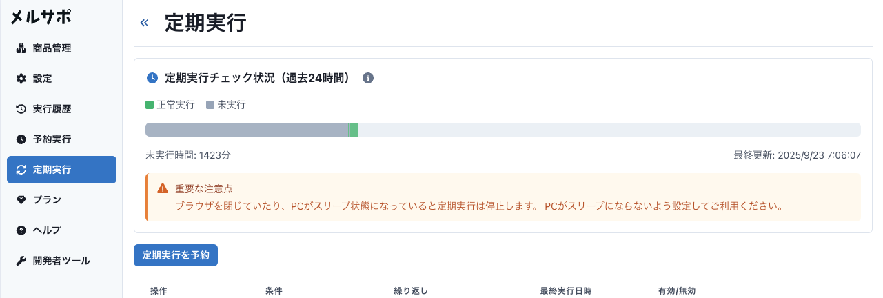 定期実行は毎分実行すべき定期実行がないかをチェックしているのですが、PCのスリープやブラウザの省電力モードへの切り替えによって意図せず毎分のチェックが停止してしまうことがあります。