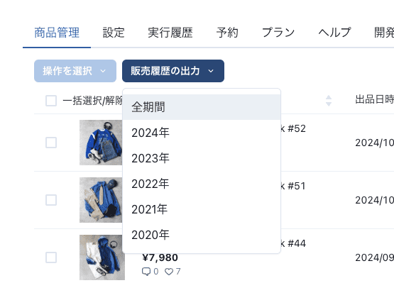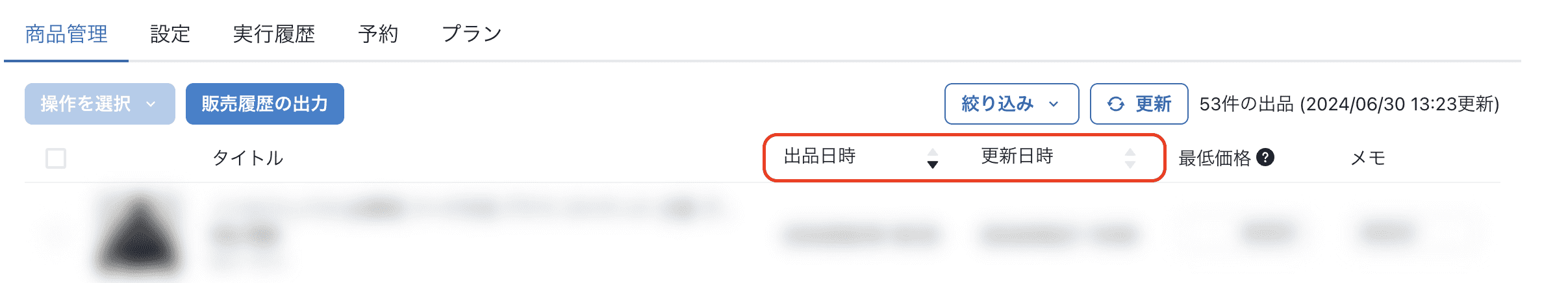 商品管理画面で出品日時、更新日時で並び替えができるようになりました。