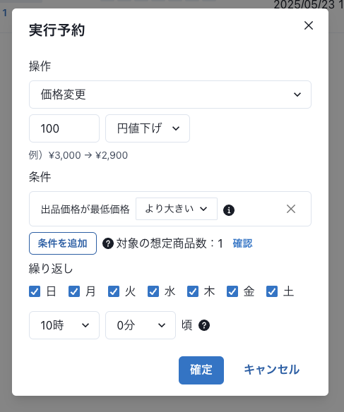 100円値下げと再出品の運用を効率的にできる設定を追加しました!
